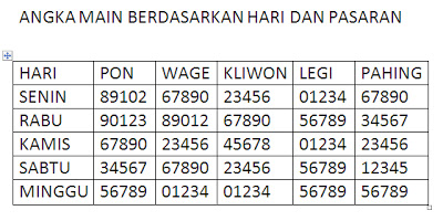 Angka Main Berdasarkan Hari Dan Pasaran MIMPI 2D ABJAD